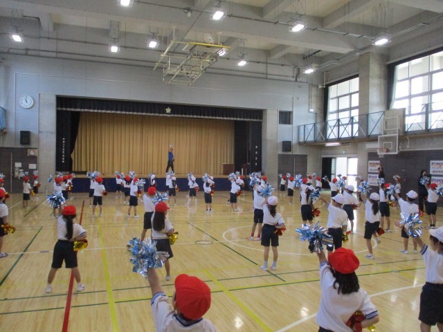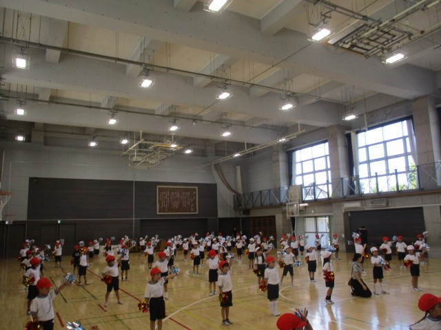 1年生の運動会練習の様子です。音楽に合わせて踊ることができるようになってきました。