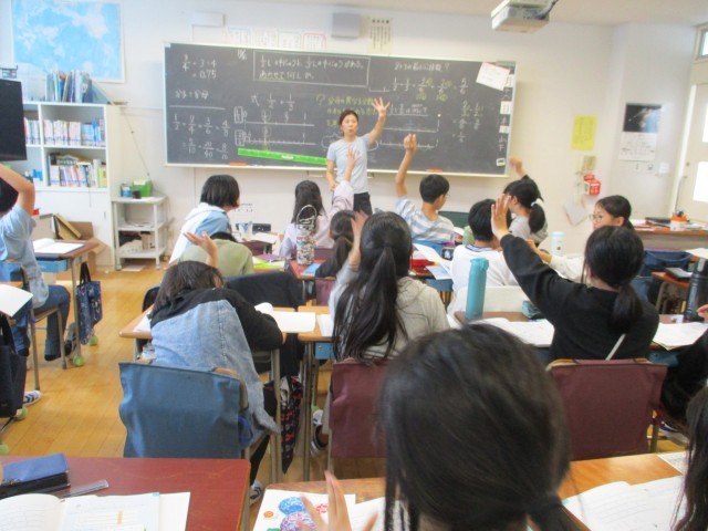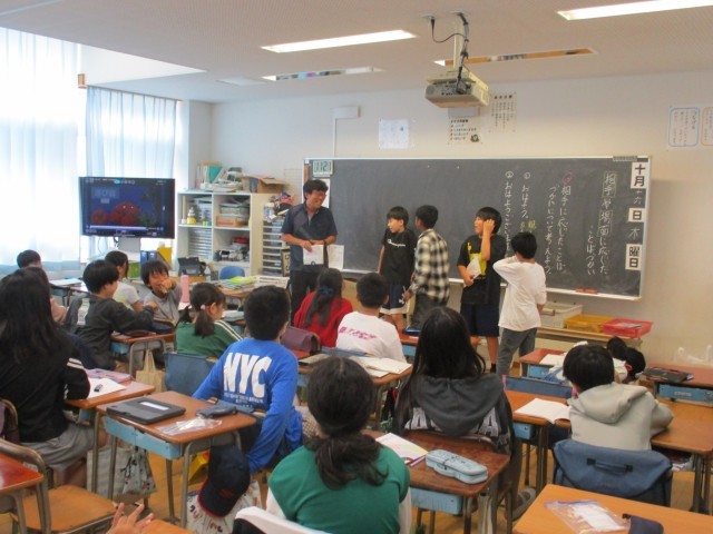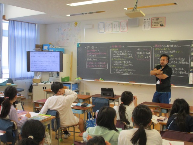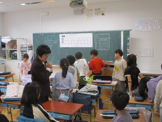 2年生音楽、4年生算数、5年生算数、5年生国語の学習の様子です。