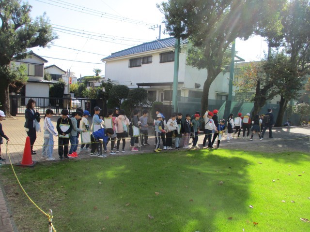 11月10日3,4時間目に3年生が烏山消防署の見学をしました。写真は、出発の様子です。
