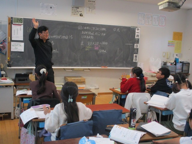 4年総合的な学習の時間、4年外国語活動、5年算数の様子です。4年外国語活動では、英語を使ったゲームを通して、外国語やアルファベットに慣れ親しむ姿が見られました。