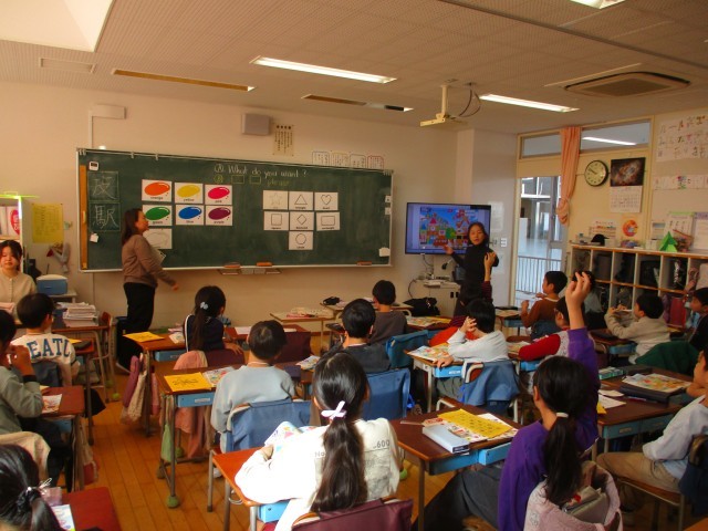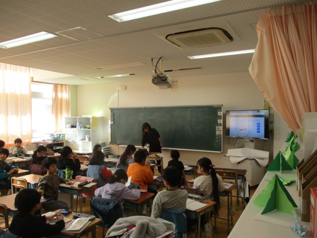 3年生外国語活動、3年生算数、5年生国語の学習の様子です。3年生外国語活動では、「What do you want?」の表現を覚えて、ALTの先生に質問したり、答えたりする活動に取り組んでいました。