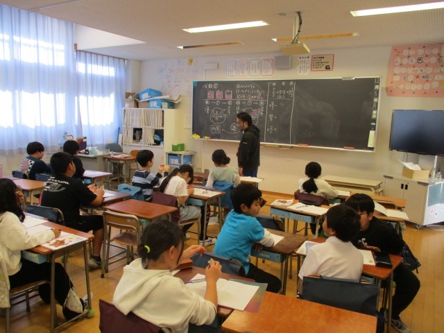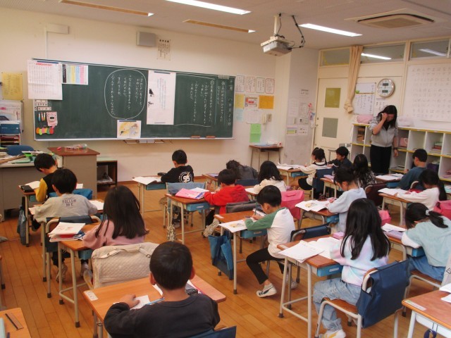 1年生国語、4年生算数、3年生体育の学習の様子です。1年生国語では、単元名「たぬきやおかみさんになりきって、すきなところをみつけよう」の学習をしていました。動作化をしたり、ワークシートを工夫したりして登場人物の気持ちを想像しやすくする工夫をして授業が展開されていました。