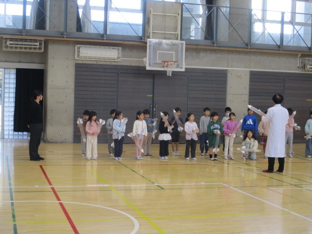 2年生の児童を対象に、教育総合センターから講師の先生をお招きして、各クラス2時間ずつSTEAM教育特別授業をしました。今回は電気クラゲ実験を行いました。傘袋で作ったロケットを何度も飛ばしている様子が見られました。