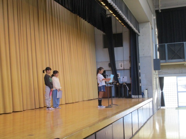 1月8日(木)から3学期がスタートしました。体育館に全校児童が集まって、始業式を行いました。3年生の代表児童が3学期の目標を発表しました。わかりやすくはっきりと発表することができました。