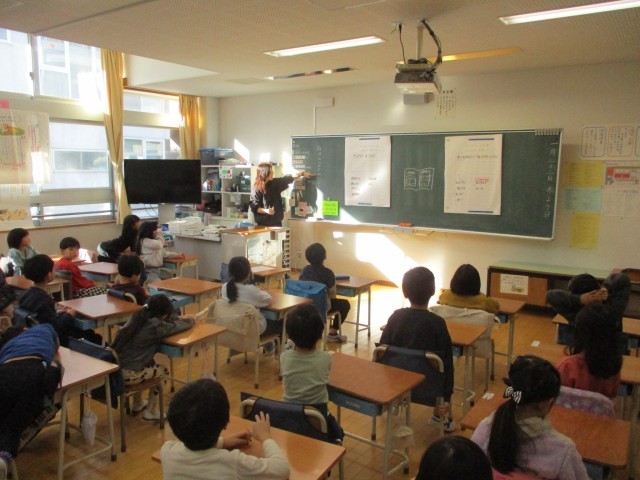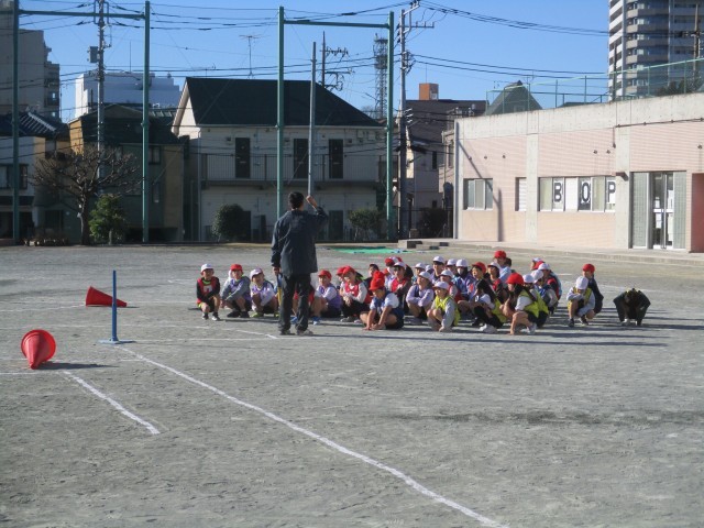 4年生体育、1年生生活の学習の様子です。4年生体育では、ベースボール型ゲームに取り組んでいました。赤いコーンはバットを置くために設置しています。安全面に配慮して運動を行っていました。