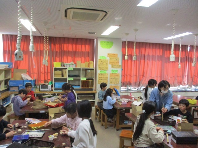 3年図工、2年生生活科、5年生体育の学習の様子です。5年生体育では「フラッグフットボール」の学習に取り組んでいました。フラッグフットボールは、アメリカンフットボールを簡易化したゲームです。作戦や役割分担がはっきりしていて、ボールを持たない時の動きが身に付きやすい運動です。
