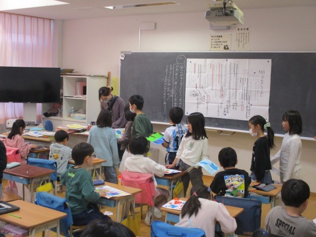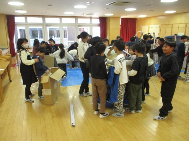 2年生国語、4年生総合的な学習の時間、4年生総合的な学習の時間の様子です。4年生総合的な学習の時間では、烏山まちづくりセンターの方をお招きして防災についての学習を行いました。マンホールトイレを組み立てたり、防災についての話を聞いたりしました。