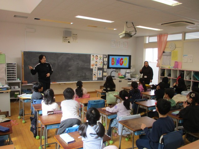 1年生体育、2年生外国語活動の学習の様子です。2年生外国語活動では、「BINGO」の歌を歌う活動を通して、英語に慣れ親しんでいました。