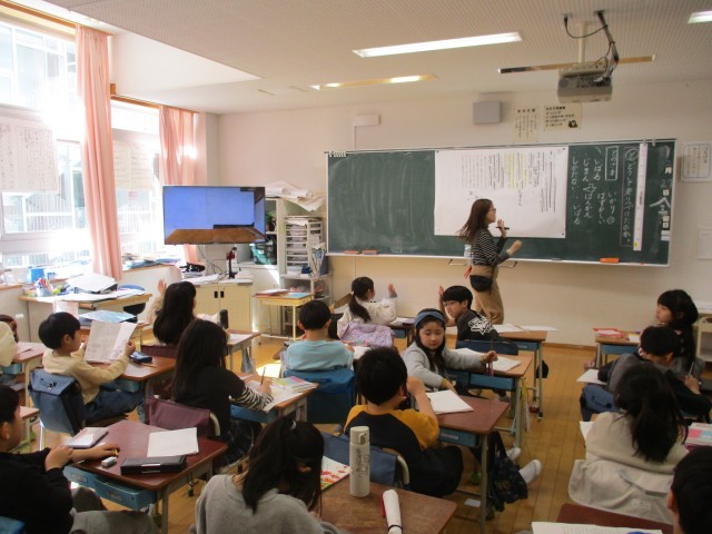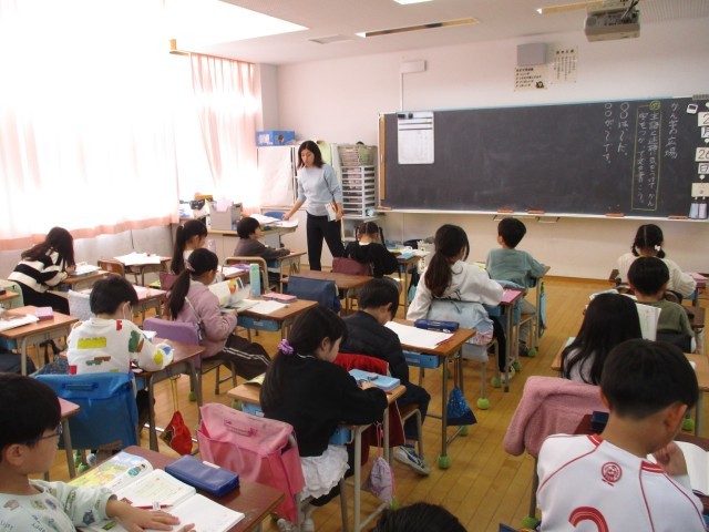 1年生音楽、2年生国語、2年生国語の学習の様子です。1年生音楽では、6年生を送る会で歌う歌を元気いっぱいに歌っていました。