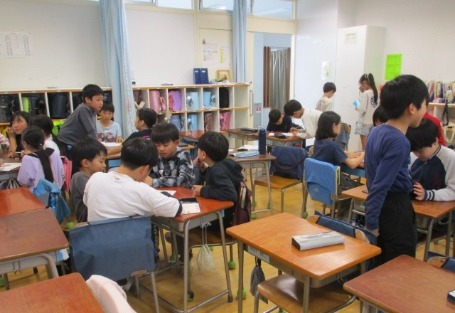 4年生 クラスの係活動の相談をしていました。○○係とよばずに、○○会社とよぶのだそうです。