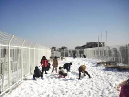 東京に大雪が降りました。子どもたちは朝から積もった雪に大喜びでした。