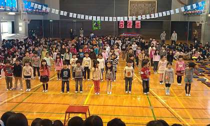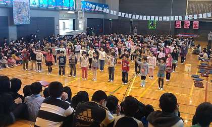 2番は、入学からお世話をしてくれた6年生にこれまでの思い出や感謝の気持ちを込めて替え歌にして歌いました。