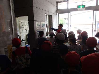 本日社会の学習で成城消防署烏山出張所に見学に行きました。出張所に着き、子どもたちは火災が起きた際の出場訓練や庁舎、消防車の車両を見学しました。特に出場訓練では、指令を受けてから出場するまでにかかる時間の短さに、子どもたちはすごく驚いていました。