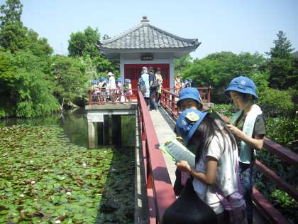 妙寿寺では、宮沢賢治の「雨ニモマケズ」の詩碑にふれたり、本堂で合掌一礼をしたり貴重な体験をすることができました。高源院では、亀の親子に釘付けになっていました。専光寺では、喜多川歌麿の話を真剣に聞き、「すごいすごい」と声が上がっていました。