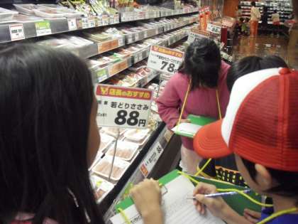 いつもと違うスーパーの一面をみることができ、とてもうれしそうな3年生でした。
