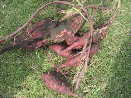 本日、学年園のサツマイモを収穫しました。