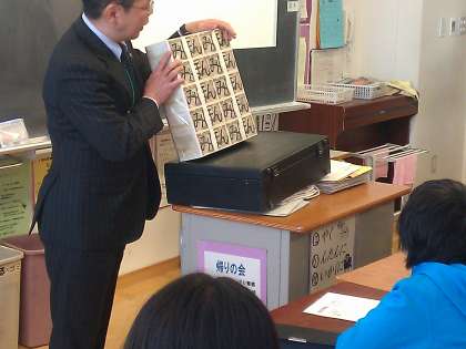 本日、税理士の方にお越しいただき、租税教室を行いました。税理士の方々はパネルやビデオを使って税についてわかりやすく説明してくださったり、税理士の仕事について話してくださいました。子どもたちは、納税が国民の三大義務の一つであること、税金が公共のために使われていることなどこれまで学習したことをさらに深く理解することができました。最後には、本物と同じ紙に本物と同じように印刷した1億円の見本を触ることができました。