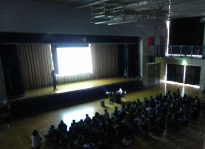 3年生から6年生までが体育館に集まり、実際の活動の様子がわかるビデオ発表やスクリーンでの発表を行いました。3年生は、「○○クラブに入りたいな。」「このクラブ、楽しそう。」と来年度から始まるクラブ活動に興味津々な様子でした。