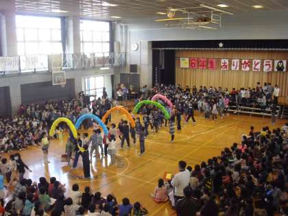 1年生から5年生が、合唱やクイズ、組体操などの出し物でこれまでお世話になった6年生に感謝の気持ちを伝えました。それぞれの学年の個性が出ていて、とても盛り上がりました。