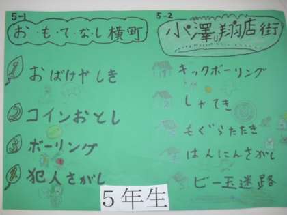14日(土)の北小祭りの5年生と6年生の内容です。