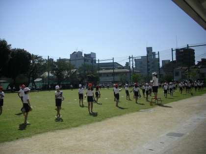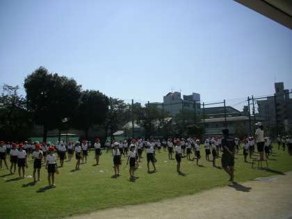 3・4年生合同のから北エイサーの練習も、校庭で隊形移動をしながら行っています。