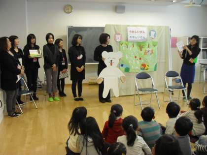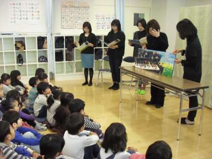 パネル劇では、大きなシロクマがコロコロと表情を変え、うれしいさんになったり、かなしいさんになったりする様子をとても楽しんでいました。物語の最後「うれしいことを分け合うと、みんながうれしいさんになれる」という場面では、うれしいさんでいっぱいになった絵を安心した表情でうれしそうに見ていました。最後に本を紹介していただくと「今度借りたい」「また読みたい」と読書への意欲を高めている姿もありました。
