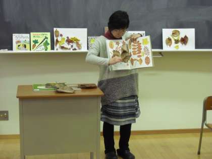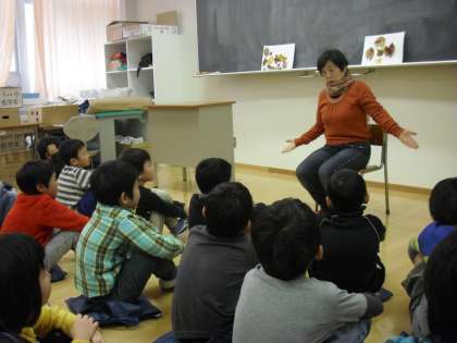 「おちばがおどる」「ハリーのセーター」の絵本の読み聞かせ、「にんじんとごぼうとだいこん」「赤ずきん」のお話、季節の手遊びなどをしていただきました。お話を聞きながら、はらはらしたり、喜んだり、笑ったりしてたくさんの本に親しみました。また、お話を聞く姿勢がしっかり保てるようになったところ、感想を伝えられるところにとても成長を感じました。