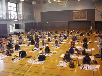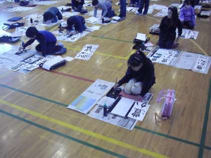 1月9日(金)に5,6年生の書き初め会が開かれました。5年生は、「豊かな心」。6年生は「平和な春」という字を書きました。一文字、一文字丁寧に書く姿が見られました。
