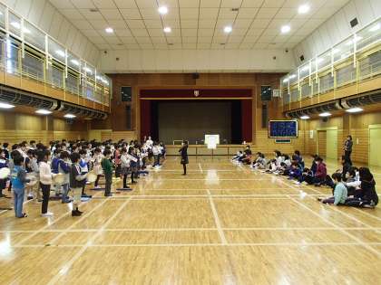 交流会では、まず、烏山北小学校の3年生が合奏を聞かせました。