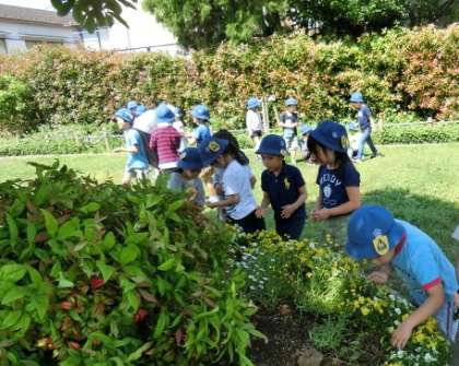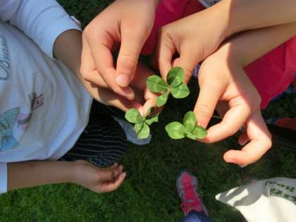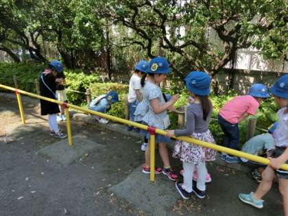 公園ではシロツメクサで指輪やかんむりを作ったり、オオバコすもうをしたりと、それぞれが遊び方を考えて楽しんでいました。また、ダンゴムシやテントウムシを見つけてじっくり観察をする姿もありました。遊びを通して、身近な植物や昆虫などに触れる貴重な経験ができました。
