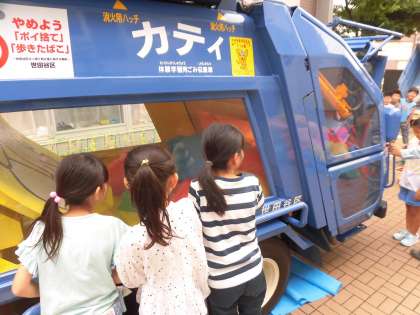 ごみ収集のことや、それに携わる人々のたくさんの工夫を知ることができました。3R(リデュース・リユース・リサイクル)はよく耳にするとは思いますが、その中でもごみを減らしたり捨てずに使ったりする2R(リデュース・リユース)が特に大切なのだそうです。子ども達は今日の体験をもとに学習を進めていきます。