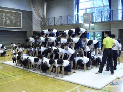 そこで、体育館で技の完成度を高めるために繰り返し練習をしました。