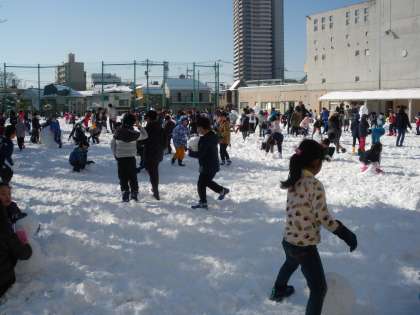 大雪にはしゃぐ子ども、がんばる大人