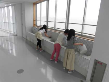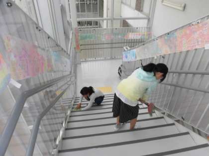 15分間で、どれだけ自分たちの学校をきれいにできるかです。