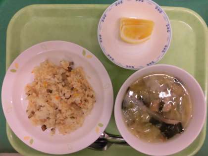 初夏のころに収穫されるごぼうは「新ごぼう」といわれ、やわらかい食感で食べやすいごぼうです。今日はピラフに小さめのさいころ状に切った新ごぼうを入れ、シャキシャキとした歯ごたえを楽しみました。