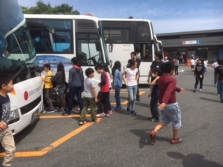 5年生が待ちに待った川場移動教室1日目が始まりました。出発式には大勢の保護者の方々が見送りにいらしてくださいました。お弁当の準備準備も含めてありがとうございました。行きは順調で、赤城高原SAでは、雪の残る谷川岳がきれいに見えました。バスの中では、それぞれレクリエーション係を中心に楽しんでいました。