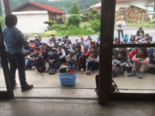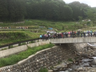 涼しく快適な天候で川場村めぐりです。清流、棚田、道祖神、154段の階段を上って村を見渡せる神社にも行きました。少し疲れたところでりんご園に到着。まずは最高のりんごジュースを頂き、りんごの説明をしていただきました。散策はまだ続きます。