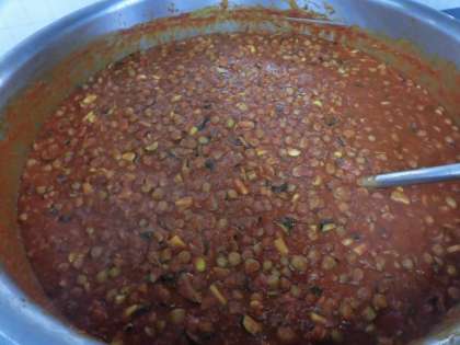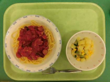 なす・ピーマン・ズッキーニなど、夏野菜がたっぷり入ったソースができあがりました。スパゲティにたっぷりかけて旬の野菜をおいしくいただきます。