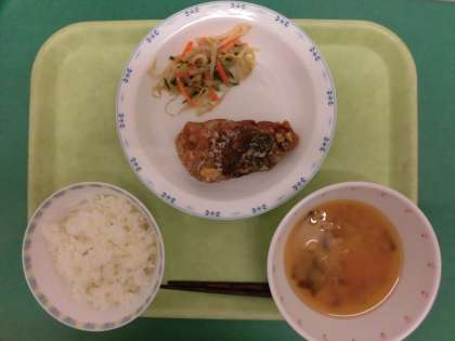 今日はあじにしょうゆだれの下味をつけて片栗粉でパリっと揚げた竜田揚げです。苦手な子どもも多い青魚ですが、おいしく揚がった竜田揚げをしっかりと食べていました。