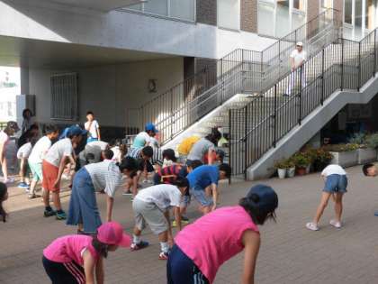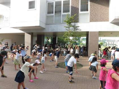 本日7月23日(月)烏山北小学校のラジオ体操が始まりました。児童と保護者の方々を合わせて200名近い人数でのスタートとなりました。中町会、親和会、烏山みずとみどりの会の皆様と手本をしていただいた毛利さんありがとうございました。副校長