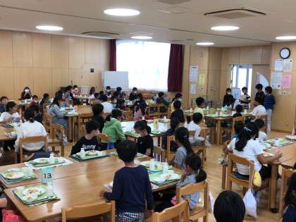 各クラスの日直さんが一緒に前に出て、いただきますのあいさつをしました。