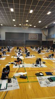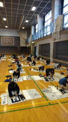 14日の1,2時間目に5年生は体育館で書きぞめをしました。
