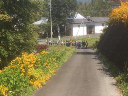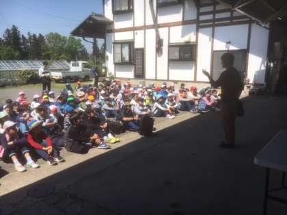 心地よい風、美しい新緑の中を村巡り。天気が良いので本当に気持ちがいいです。途中、りんご農園に立ち寄り、村の様子やりんごのお話を伺い、濃厚なりんごジュースをいただきました。