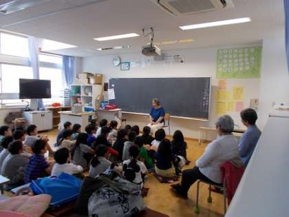6月11日(火)、おはなし泉の会の皆様に来ていただき、読み聞かせを行ってもらいました。読んでいただいた話は、「光の旅かげの旅」「小石投げの名人タオカム」「七わのからす」「子守泥棒」でした。中でも絵本を使った読み聞かせは、子供たちから「おぉ〜!」と歓声があがりました。また2学期も、よろしくお願いいたします。