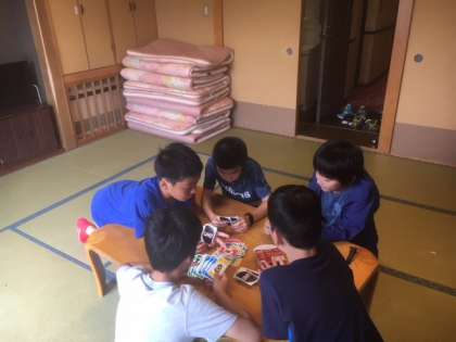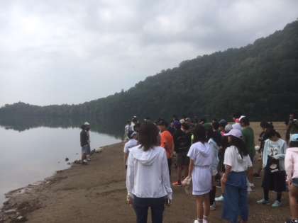 おはようございます。もう最終日になってしまいました。子どもたちは時間を守って元気に過ごしています。今朝は湯の湖畔で朝会をしました。山がきれいだなあ、とつぶやいている子がいました。自然は私たちの心を優しくしてくれます。朝食後、部屋の片づけ、清掃を協力して行いました。宿舎の方々には本当にお世話になりました。感謝の気持ちを忘れずに次の目的地に向かいます。