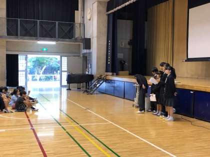 烏山北小と武蔵丘小の6年生に対して、烏山中学校の生徒会の皆さんが中学校の生活について演劇や動画などで説明をしてくださいました。事前の用意などが綿密にされていて、有意義な時間になりました。