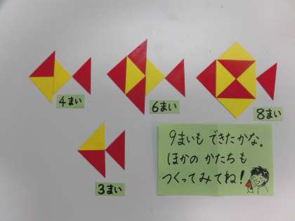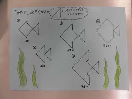 上のしゃしんは、先生たちがつくったいろんな「さかな」のかたちです。