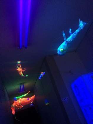 ブラックライトを使ってつくった深海の生き物たち