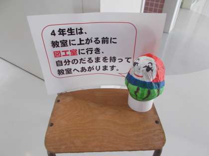 登校したら図工室前から自分のだるまを持って教室に上がるようにしましょう。