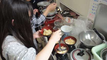 時間通りかややオーバーして全班作り終え、それぞれ食べました。